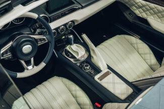 La doble costura en diamante agrega un toque de elegancia a los asientos, mientras que los detalles de taracea en las puertas evocan la rica herencia andalusí. Cada elemento interior ha sido cuidadosamente seleccionado para transportar a los ocupantes a un viaje de lujo, rindiendo homenaje a la rica historia cultural que ha inspirado este diseño excepcional.